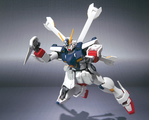 武器は、ザンバスター(バスターガンとビームザンバーに分離可能)、ビームサーベル、ヒートダガー等が付属。特徴的なマントは、躍動感あふれる造形でアクションポーズを演出します。2009年7月発売のライバル機「クロスボーンガンダムX-2改」とあわせて、宿命の対決を再現!