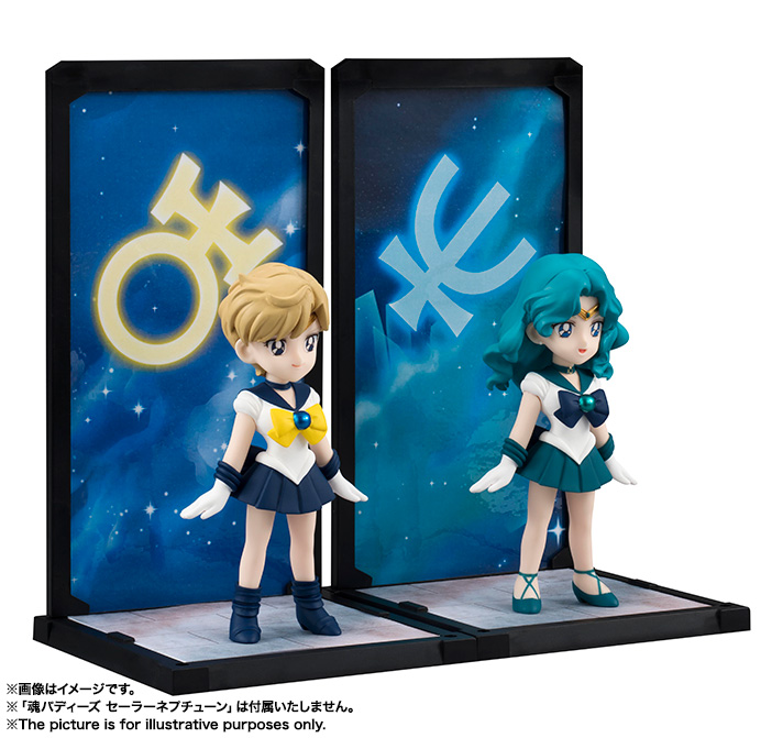 すでに勢揃いした5戦士に加え、セーラーウラヌス、セーラーネプチューンが魂バディーズに登場。