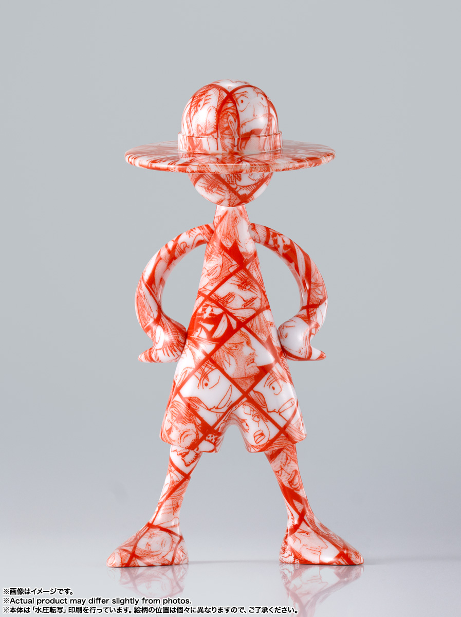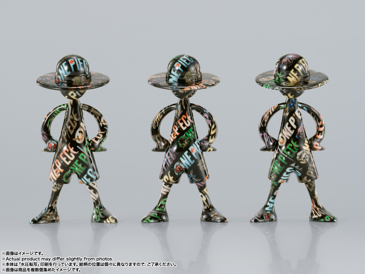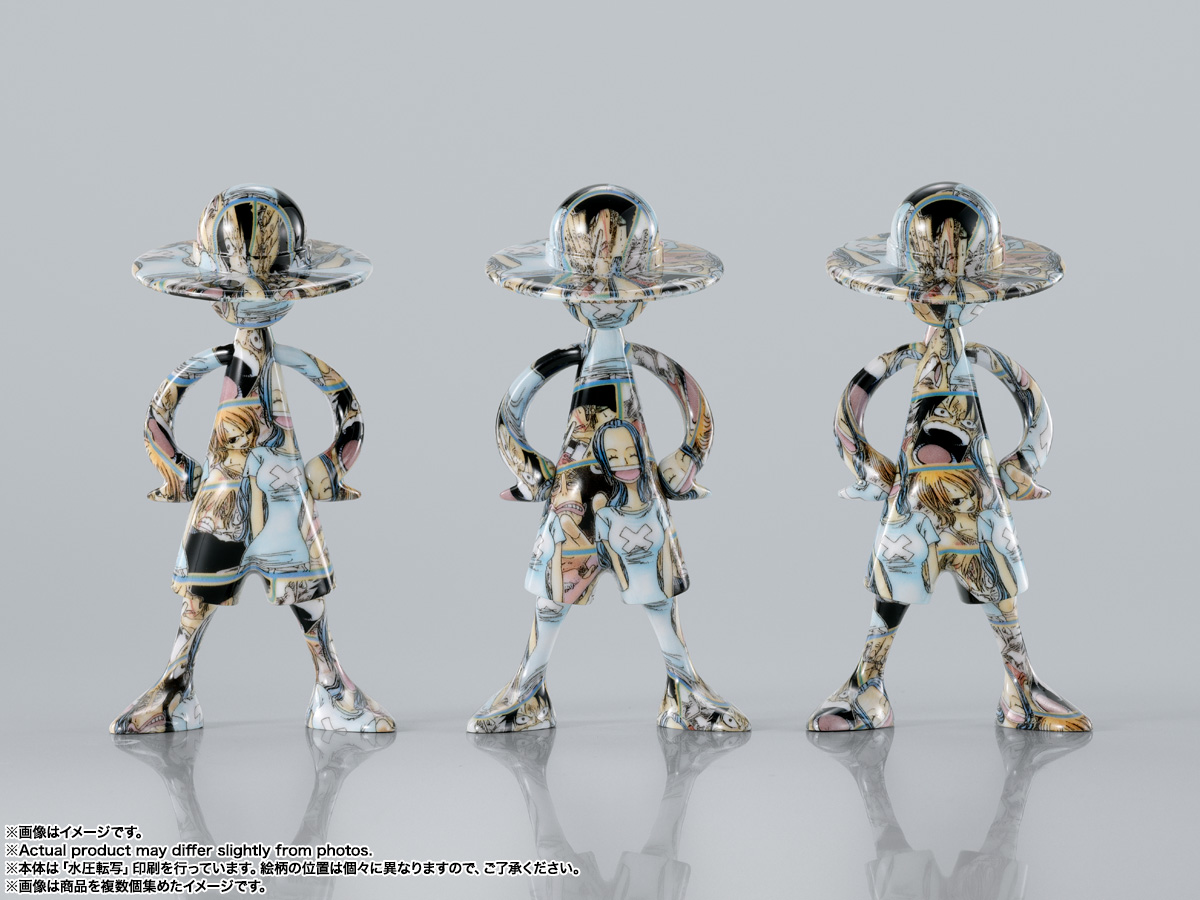 『ONE PIECE』にまつわるデザインを前面にプリント。水圧転写のプリント技術を使用し、ひとつとして同じ柄の写り方はない、唯一無二のフィギュア。