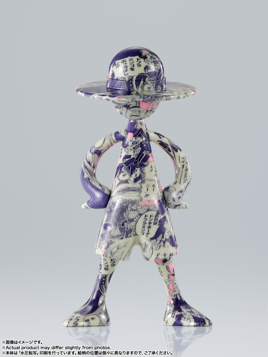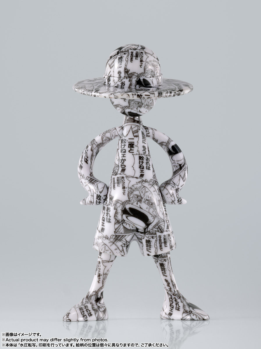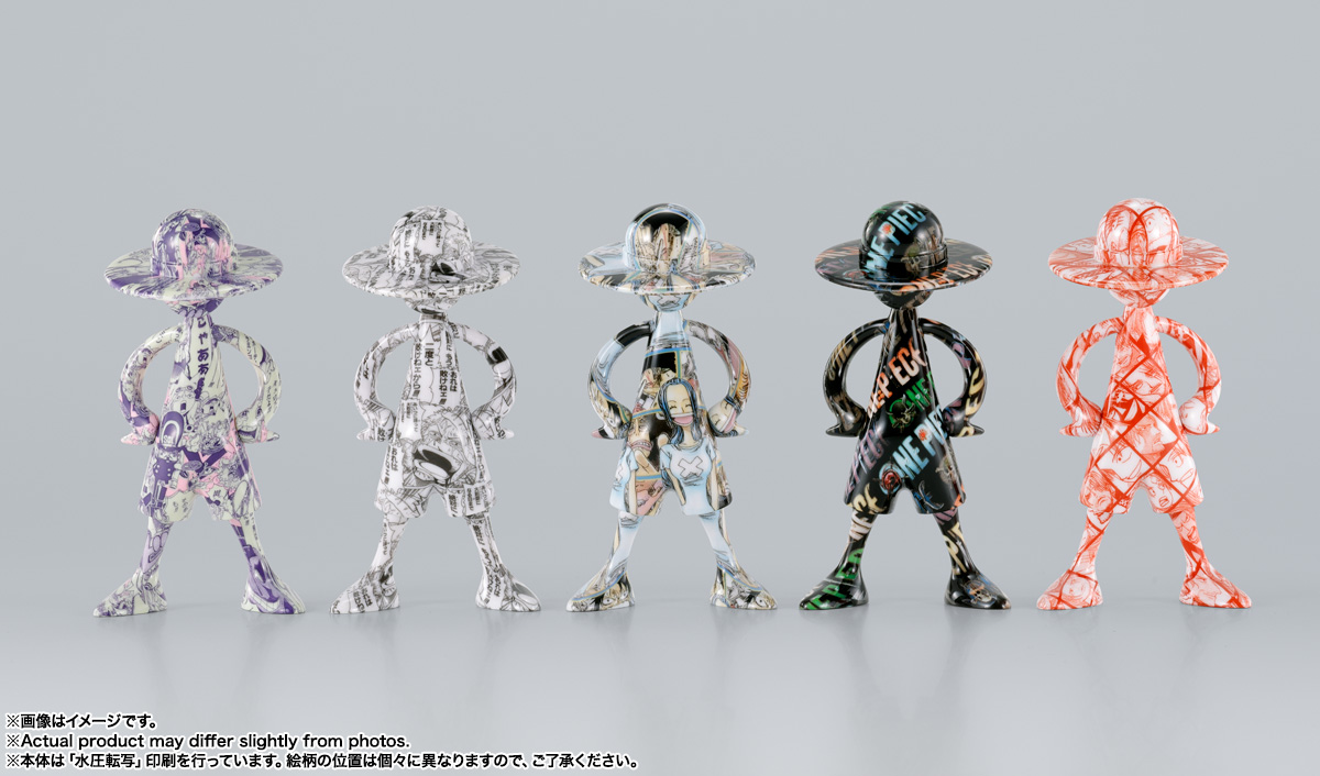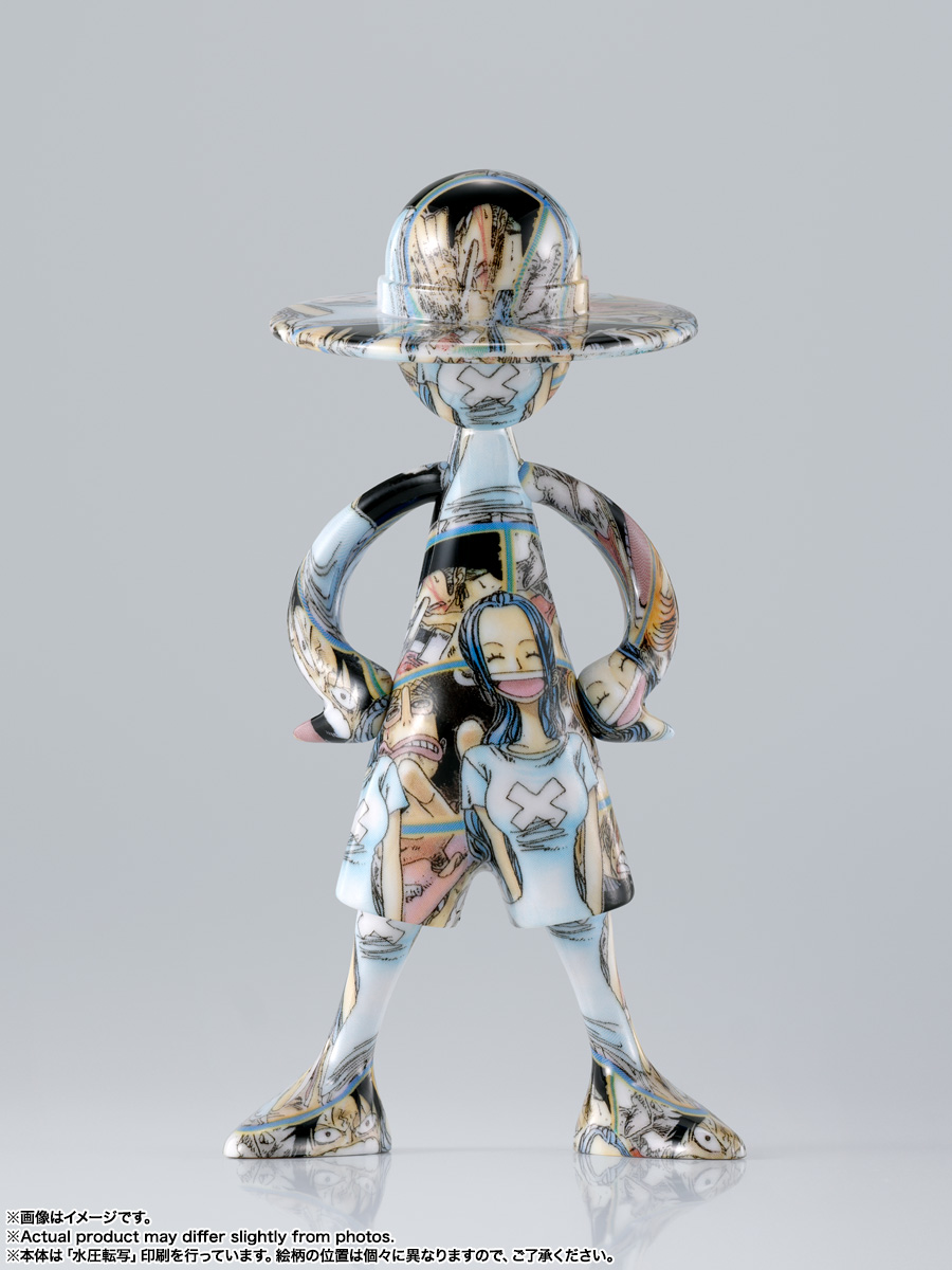 『ONE PIECE』にまつわるデザインを前面にプリント。水圧転写のプリント技術を使用し、ひとつとして同じ柄の写り方はない、唯一無二のフィギュア。