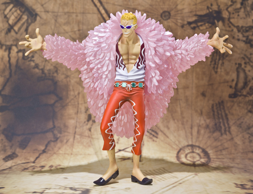 マリンフォード編でも活躍を見せ、今後の更なる活躍が期待される王下七武海の一角ドンキホーテ・ドフラミンゴを立体化。頭部差し替えパーツで印象的な高笑い顔も再現が可能。