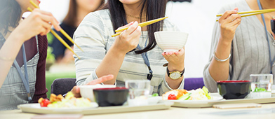 オフィスの隣の建物にある社食でランチ!社食では、色んな種類のご飯があるため、その日の気分によって好きなものが食べられます。私のおすすめは小さいパンとドリンクが付いてくるパスタです!