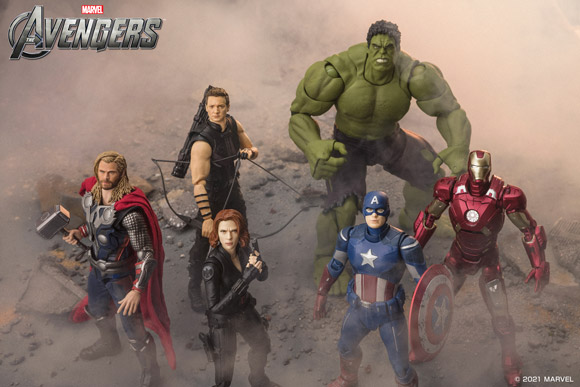 リアルイベント展示でのMARVELの新商品公開がしばらくできておりませんが、この4月と5月には2012年公開映画『アベンジャーズ』より、MCUの原点とも言えるキャプテン・アメリカ、アイアンマン マーク6、ソーそしてハルクが発売されました。その4体を揃えれば『アベンジャーズ』の名シーンを再現できますが、今日は作品のより完全な再現を目指して、待望の二人のメンバーを紹介したいです!