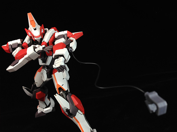 | 今回は腰の横スイング軸を追加しました。それにより表情豊かなポージングが可能となっています。 前後の可動についても可能なかぎり可動域を確保。今回はコックピットがあったため、フレームのスペースが無くて色々と大変でしたが、表情豊かなポージングが可能となりました! |