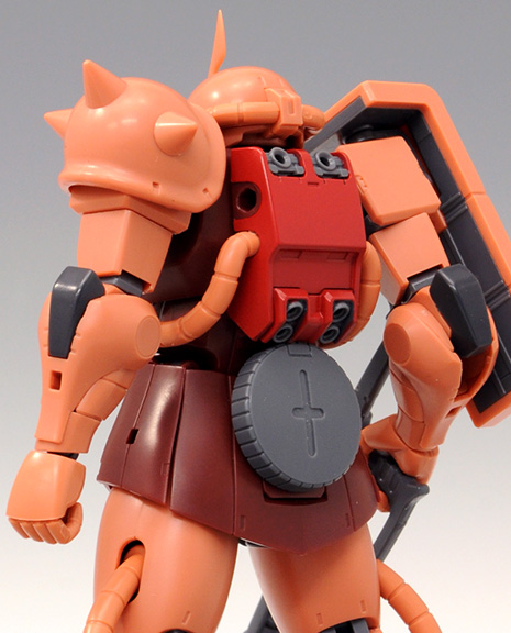 「シャア専用ザク」では首が引き出し可動し、突進しながら前(=上)を見るポーズが再現可能。