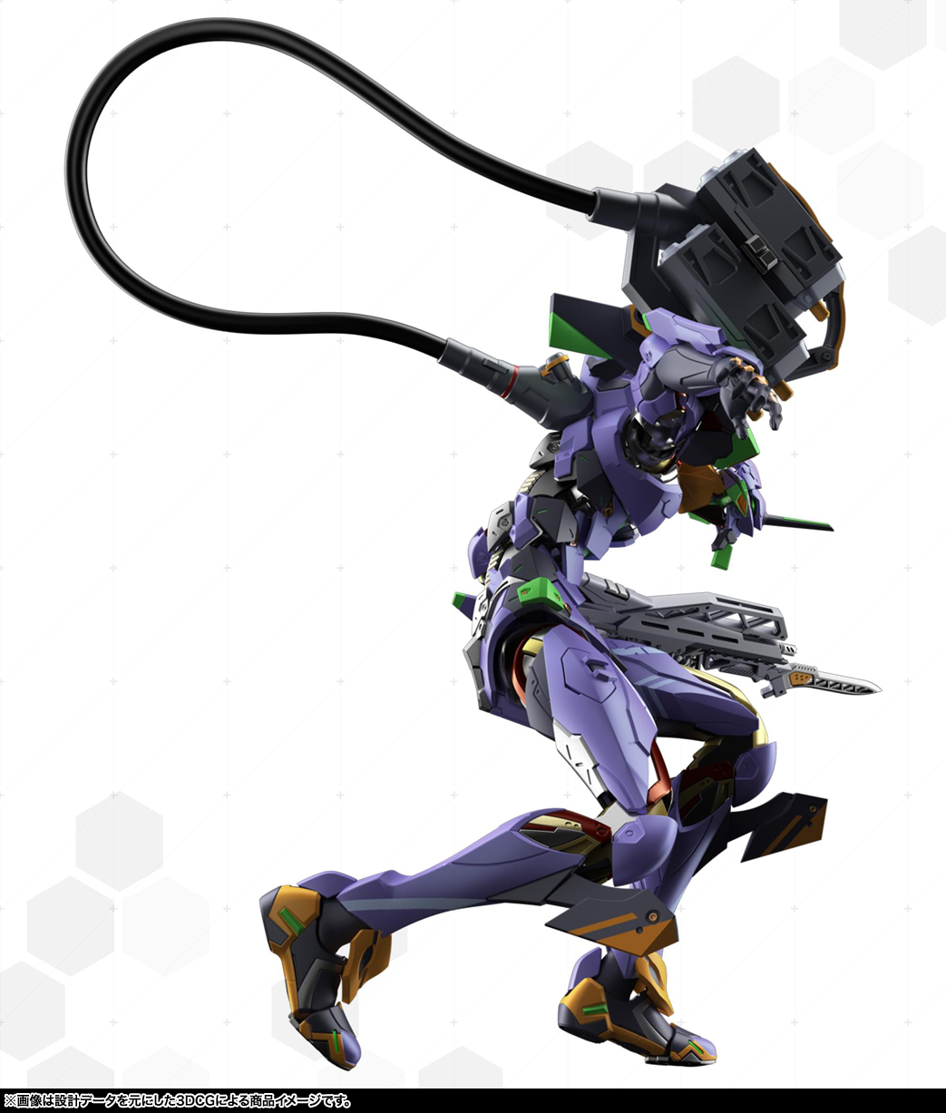付属装備を持たせ、立たせた状態の全身イメージがこちら。ワンポイントの配色やダイキャストパーツの色味がこれまでの初号機・2号機とも違っているのがMETAL BUILDならではのポイントです。